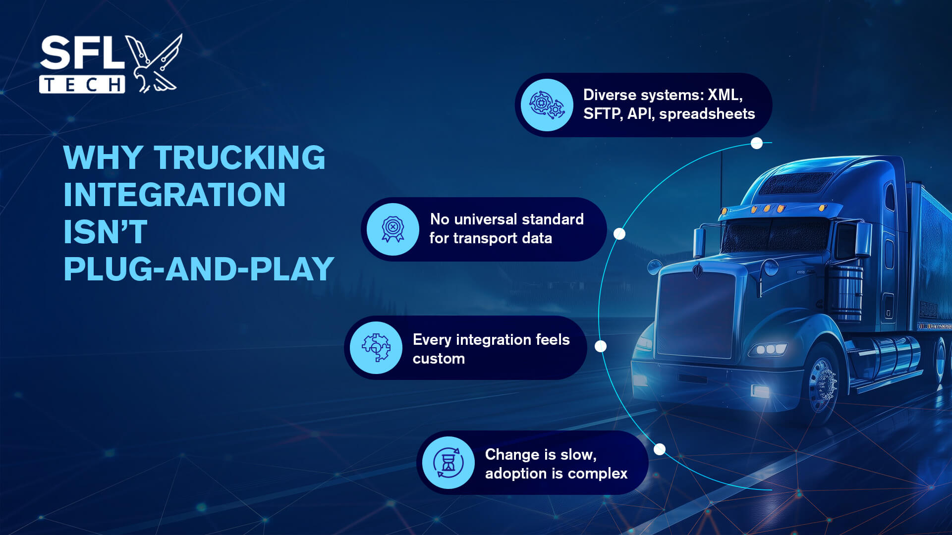 On the surface, it may seem like a straightforward challenge: connect the systems. But the reality is far more complex. But here’s the catch: trucking partners are diverse. Some use modern platforms, others rely on legacy tools, and many still operate manually. There’s no universal standard, no plug-and-play fix.